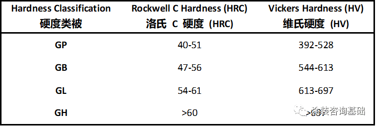 市场上的钢砂磨料有四种硬度分类,如下所示: